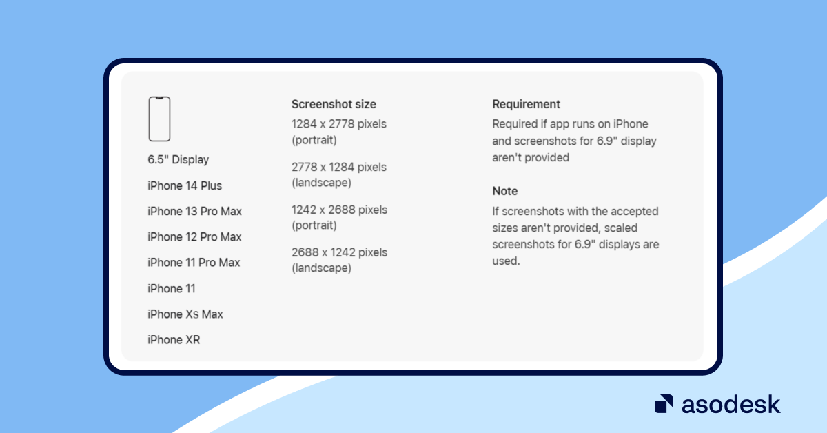 Apple скорректировала требования к скриншотам приложений: по наблюдениям разработчиков, в App Store Connect размер ″6.9″ больше не указан в качестве основного для загрузки, вместо него вновь используется ″6.5″ по умолчанию.