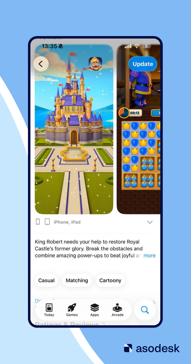 В App Store (iOS 26) появились теги на страницах приложений. Сейчас они замечены у некоторых приложений в Custom Product Pages. Теги отличаются от тех, что отображаются в поисковой выдаче под иконкой приложения.