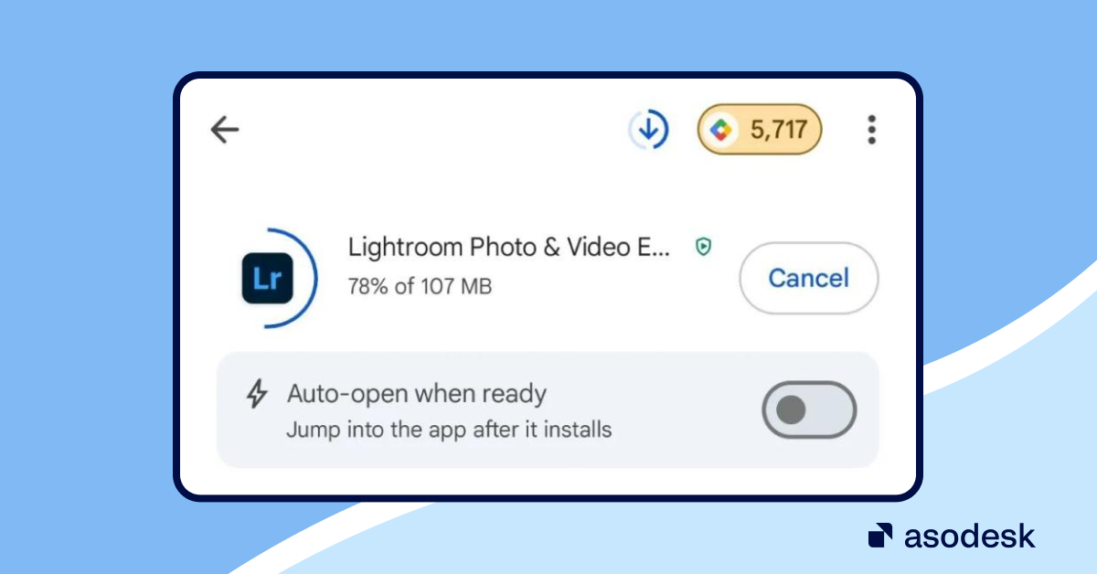 В Google Play тестируют новую функцию – автоматический запуск приложения сразу после его установки. Пользователь может активировать тумблер «auto-open when ready» под индикатором прогресса загрузки.
